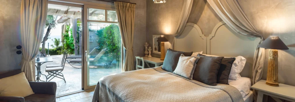 Master bedroom with King size Coco-Mat bed and direct sea view Second room with garden view that can…